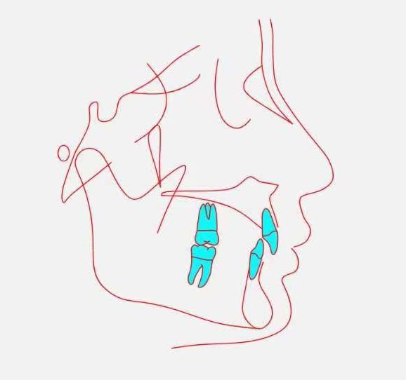 2、恢复上前牙正常转矩,上前牙正转矩控根需要前牙段牙弓间隙,同时保持上前牙切端的矢状向位置不变。