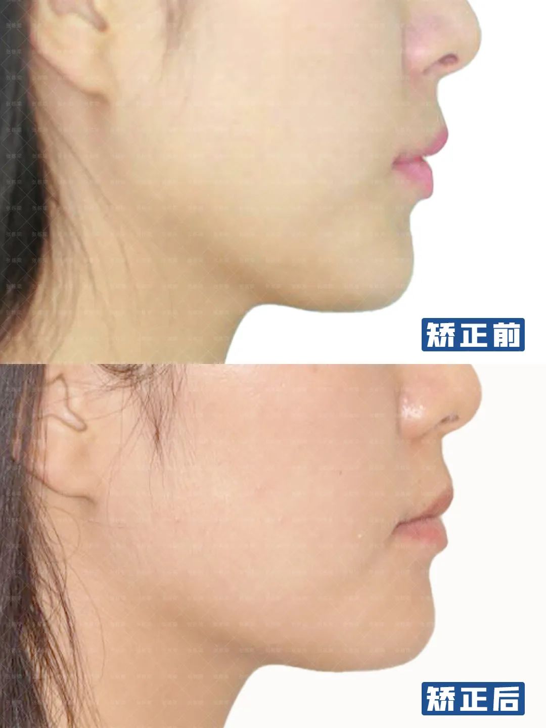 一般是下颌骨的形态发育结构正常,只不过是上下牙的咬合关系导致下颌处于后缩的位置。方形的上牙弓形态和上前牙舌倾是下颌后退位置的关键诱因。