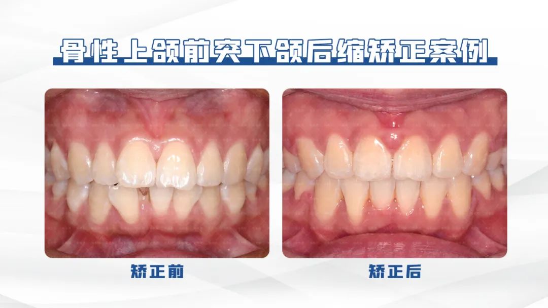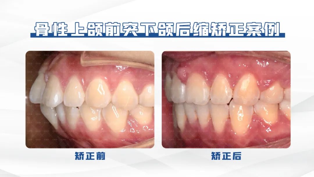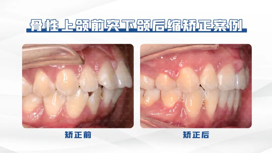 在这里给大家分享一则牙齿矫正改善骨性凸嘴、下巴后缩的案例: