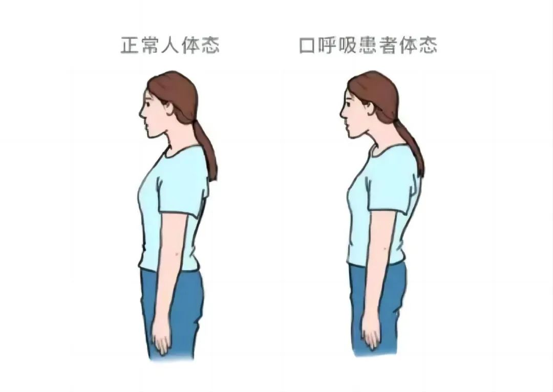 无意识时嘴是半张开的;嘴唇发干;早晨醒来时,喉咙火辣辣的干疼;无法有意识地活动鼻孔;放松照镜子,嘴角总是朝下撇;吃东西时发出咕唧咕唧的声音;打鼾;上下嘴唇厚度差距大;下唇“地包天”;牙齿不齐或前凸;习惯用单侧牙齿咀嚼。