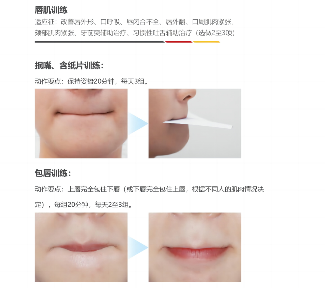 1、纠正口呼吸习惯,逐渐纠正呼吸习惯,越早纠正,效果越好,可以家长们辅助孩子有意识地进行闭嘴训练,还可以配合唇肌功能训练。