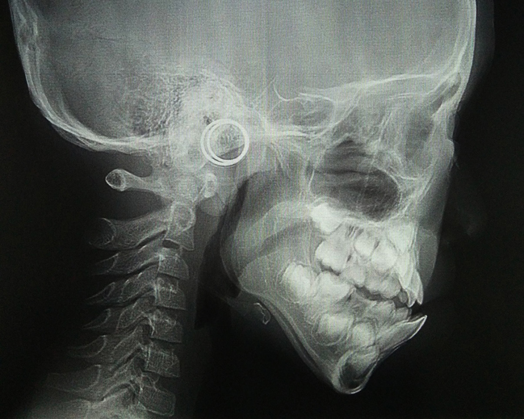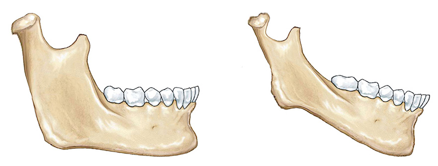 如果我们拍一张片子的话,有些孩子呼吸道就很窄,下颌骨有跟舌骨是连着的,舌骨再往下是跟气道连着的,所以小下巴的孩子有的时候睡觉就会打呼噜,呼吸不通畅。
