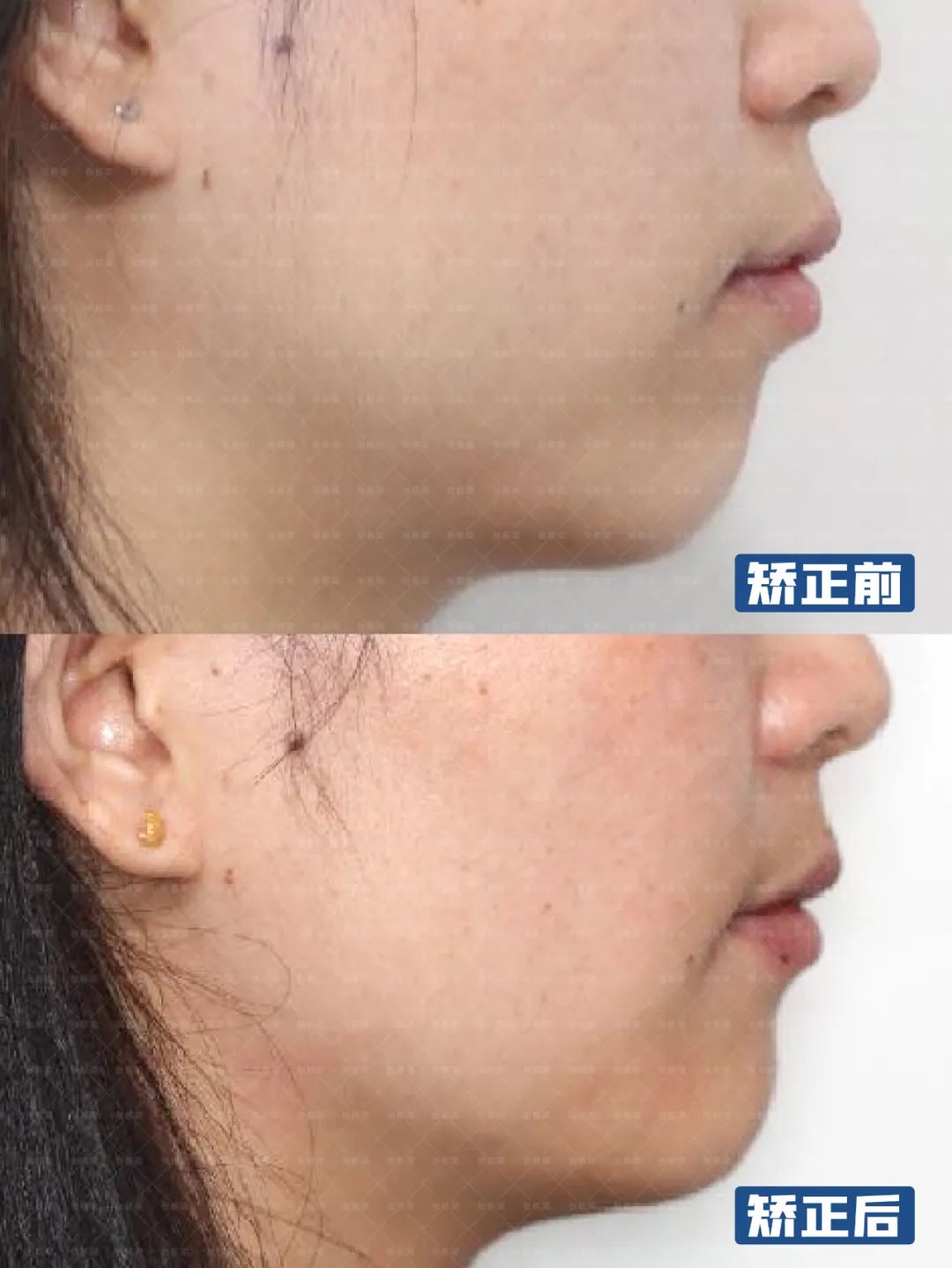所以我们看到的成人下巴后缩的案例,没有生长发育潜力的时候,我们会把咬合的一些因素去掉,在可以的情况下,尽量的让下巴展现出来,所以你看起来好像下颌骨位置好了。