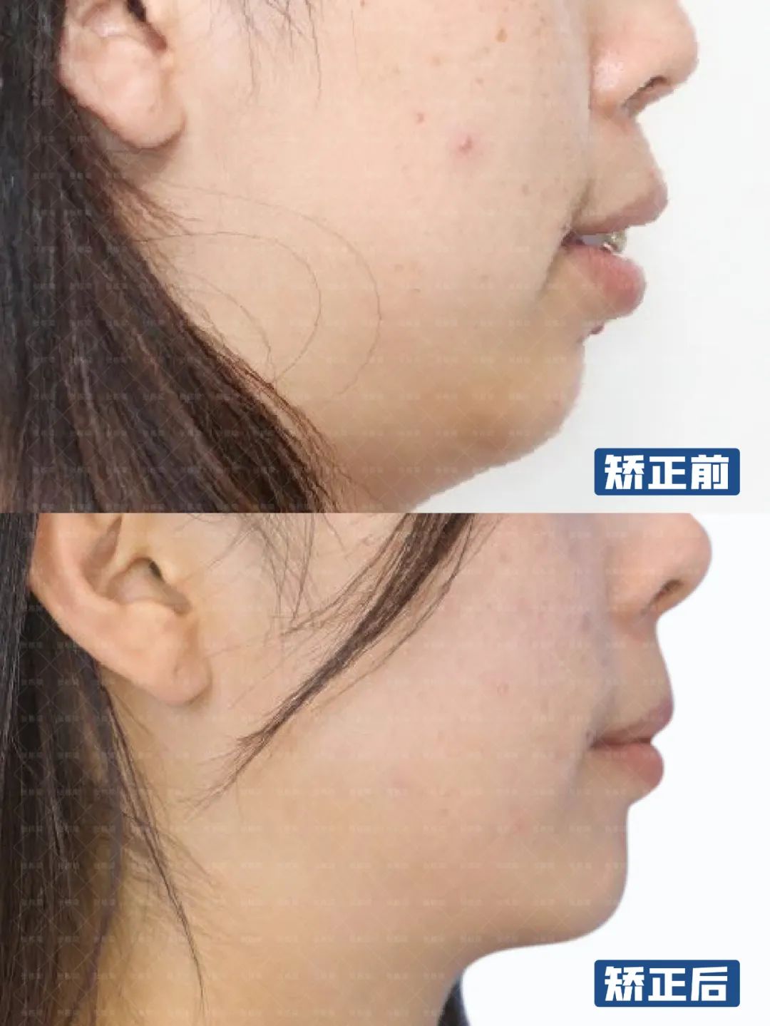 从健康角度来看,牙齿和咬合都恢复良好。从美观角度来看,凸面型改善良好,颏肌紧张、开唇露齿都有了好的改善,收获正常的下巴。