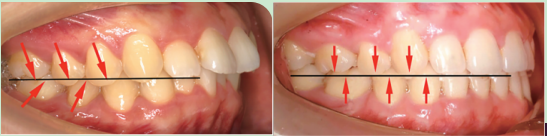 使得上后牙长轴垂直于颌平面,整平下颌Spee曲线,使得下后牙长轴垂直于颌平面,通过咬合引导下颌向前。反之,倾斜的Spee曲线,咬合会使得下颌向后滑动,下巴后缩因此会加重。