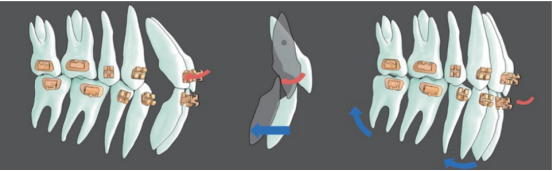 上前牙内收,改善上颌前凸。上前牙内收时出现的直立通常会随之出现伸长,但是上前牙伸长,会使下颌不得不处于向后的位置,不利于改善颏部形态,因此要压低上前牙。
