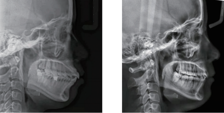 但如果这个患者有生长发育潜力,同样当我把异常咬合因素去掉,去掉深咬合,去掉牙齿的角度,让下颌骨自然的往前长,使咬合平面调平,那下巴后缩的改善效果,自然会更好。