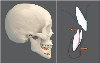 将后牙咬合的支点前移,促进下颌逆时针旋转,下颌颏部明显,改善嘴凸下巴后缩问题。