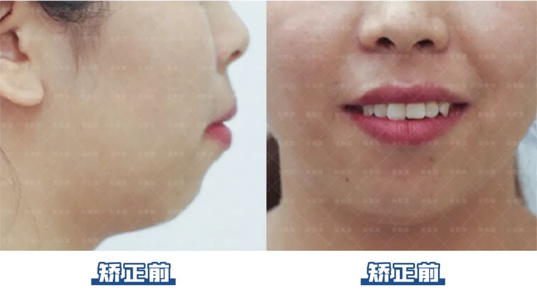 正面观&侧面观:面部双侧基本对称,颏点正中,面下1/3高度稍长,无露龈笑,放松时开唇露齿,闭嘴时颏肌紧张,凸面型,上颌前凸,下巴后缩;