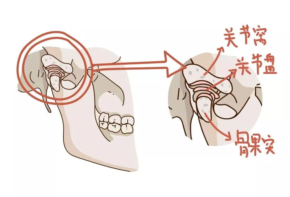 由于上下牙的咬合锁结,导致下巴被迫的后退,在加上关节是整个下颌骨的最后端,前牙是整个下颌骨的最前端。一旦下颌后退的时候,这个时候下颌关节就会不停的向后撞。