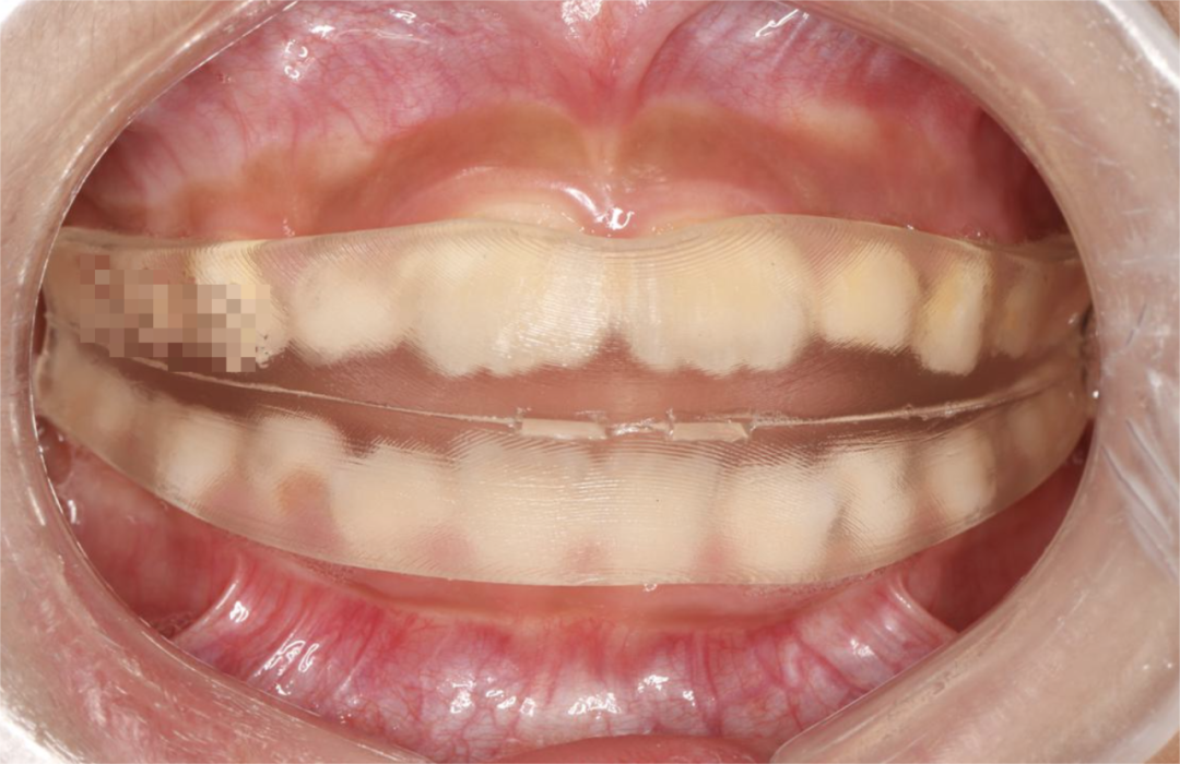 这种肌功能矫正器,其实只要晚上睡觉戴就行,其他时间不用带,其实颌骨发育跟牙齿的生长,它是有时间的,也是有早晚差别的。