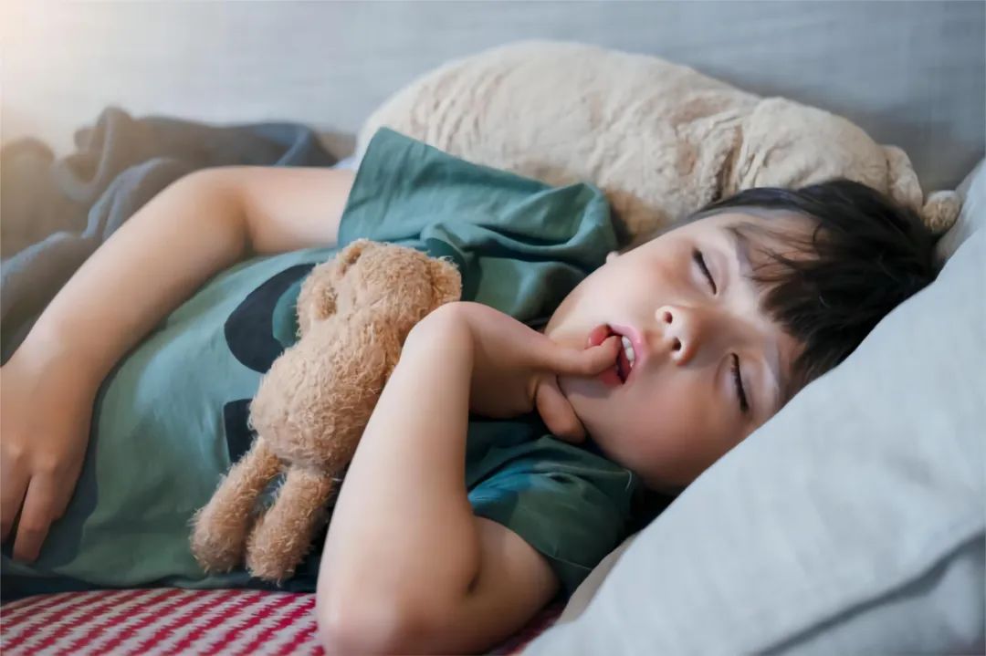 就是你看孩子的门牙,它是往里倒的,那么上牙就压着下牙,下巴就会被迫往后退,那主要一点就是它容易导致上颌前凸,容易影响下颌骨的正常的生长发育。