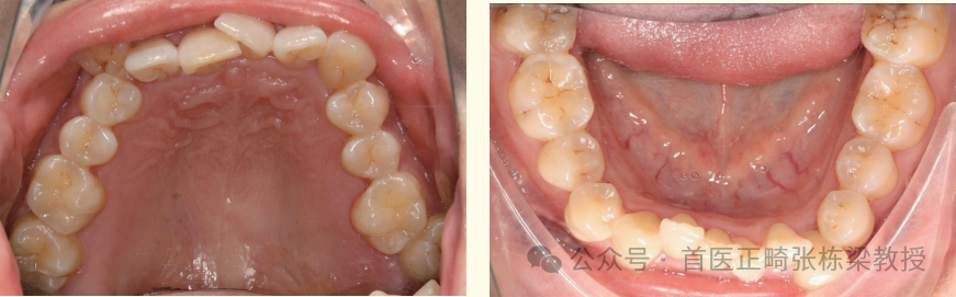 但这种案例情况大多数人都觉得要拔牙才能获取空间改善,其实这种案例重点是后牙垂直高度不足,不拔牙矫正才是合理的解决方案。