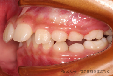 孩子存在的问题:骨性II类牙性 II 类 1 分类,下颌后缩,上前牙严重唇倾,深覆合,极度深覆盖,上牙弓狭窄。
