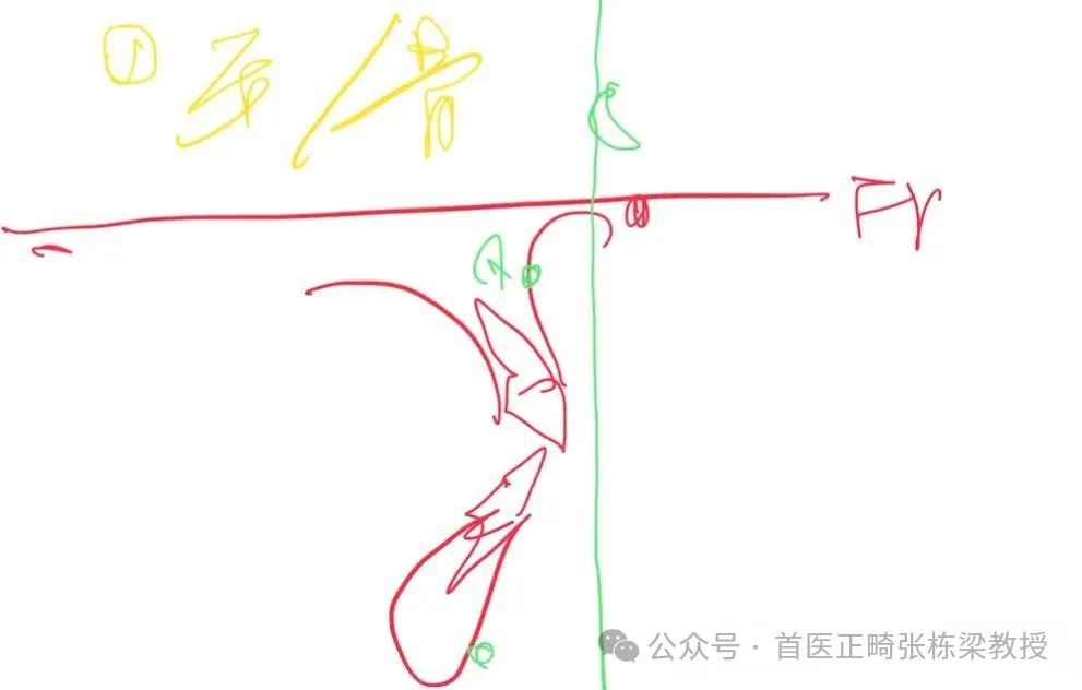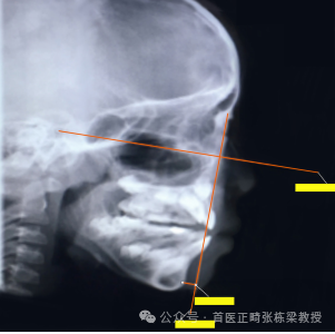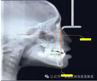 我们会给孩子拍X光片,设定FH平面,找出眶点、耳点、鼻根点,从鼻根点向下做垂线,分析上颌骨的A点和下颌骨的颏前点距离,这条线的距离,是我判断地包天骨骼问题,比较常用的方法。