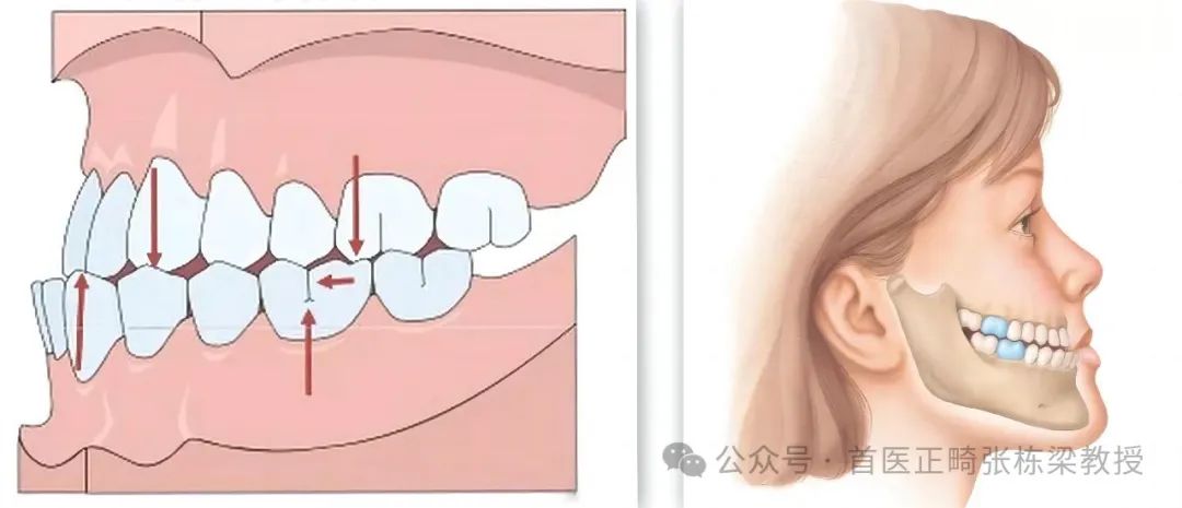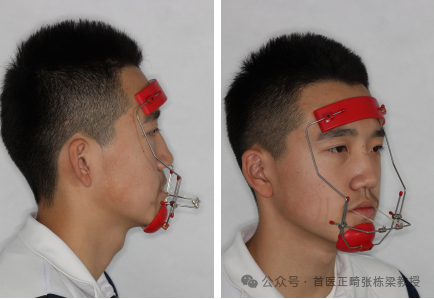 那么前方牵引的反作用力,同时也可以控制下颌骨过度的生长,因此前方牵引是做反颌一个有效的方法。