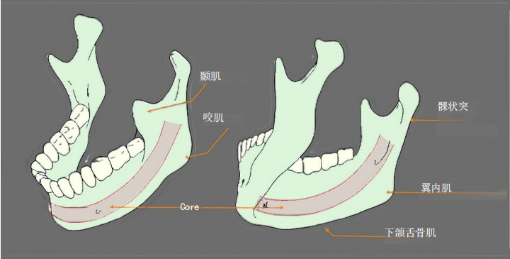 内下颌骨指的是围绕下颌神经管附近的下颌骨组织结构。外下颌骨指的是下颌骨的边缘突结构:牙槽突,髁状突,下颌升支,下颌骨下缘。