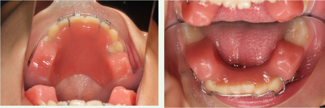 (1)上前牙压低,控制转矩内收,为下颌逆时针旋转生长创造空间。