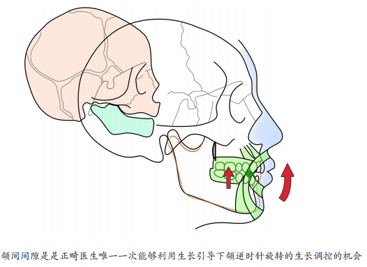这个上下颌骨之间的空间能够允许下颌逆时针旋转,这个空间就是颌间间隙,这应该是正畸医生唯一一次能够利用生长引导下颌逆时针旋转的生长调控的机会。