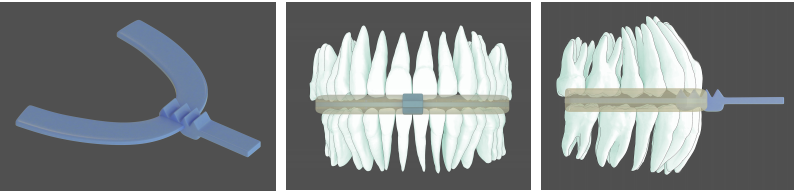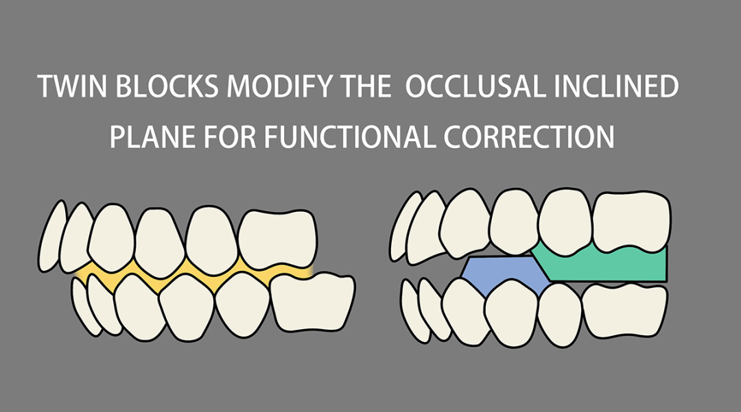 因此改变II类的咬合斜面,就可以改变刺激颌骨改建的II类力量。给II类的患者带上I类咬合关系的咬合板,在II类患者的口内模拟I类的咬合关系,引导下颌向前,促进下颌生长。
