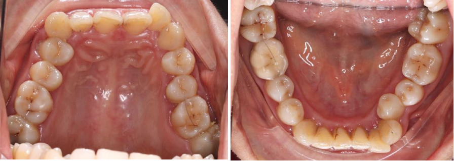 整个牙齿矫正过程,女士配合良好,从牙齿、咬合、面型上看,都得到理想的变化,可以看到上下前牙排齐,牙弓形态对称,面型维持良好,兼顾了美观和健康。