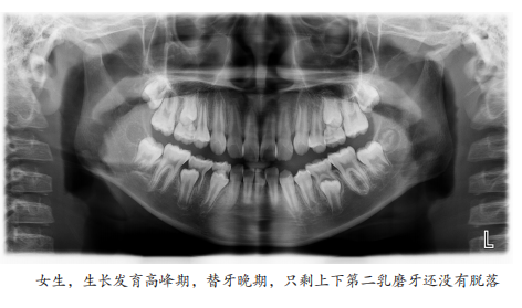当然每个孩子实际的身体的发育的年纪,跟岁数是不一样的,比如说我注意到有的孩子9岁就都换完牙了,有的孩子11岁还没换完牙,家长也可以以孩子上颌的2到2和下颌的2到2萌出后为参考,这也是早期矫正干预下颌后缩比较好的时期。