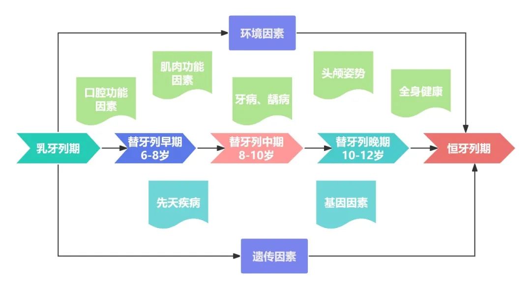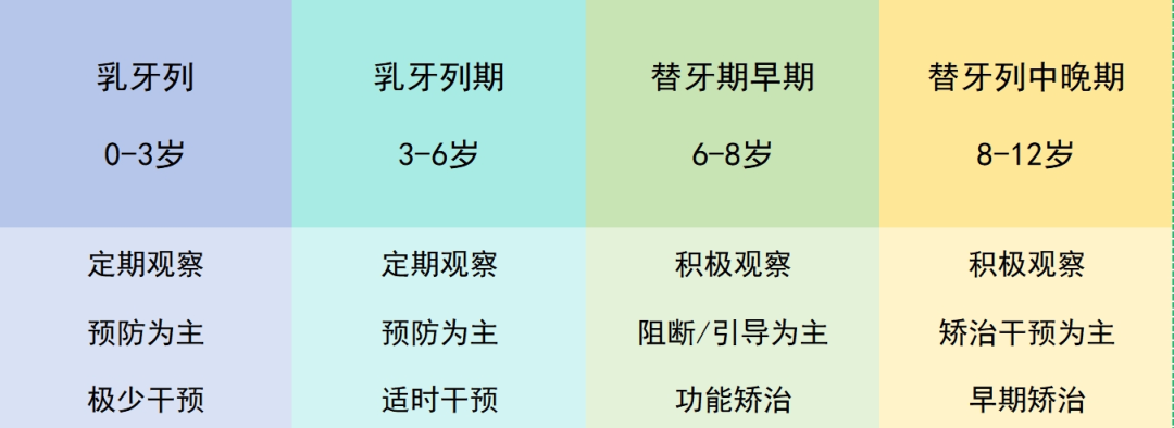 此时期需要密切观察孩子功能性、骨性错颌畸形的发展,如果出现及时进行早期矫治干预。