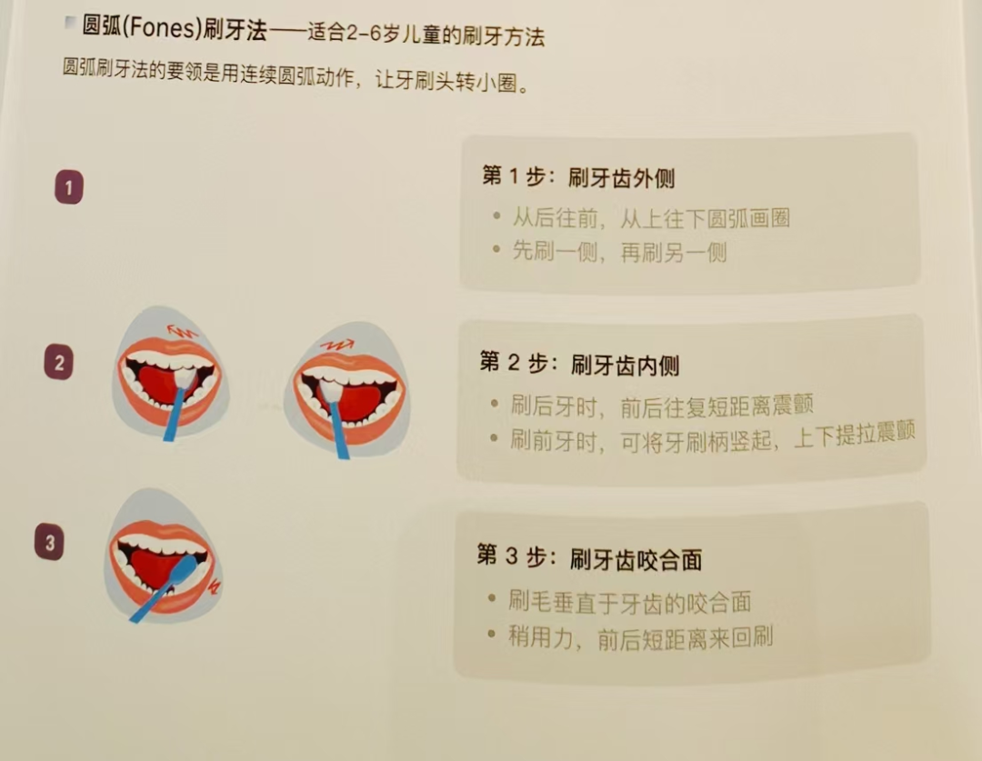 (3)2岁左右吃辅食后,要有意识增加锻炼孩子的咀嚼能力,促进口腔肌肉的发育和颌骨的生长。家长需要密切观察乳牙萌出情况和孩子口腔功能的生长发育,必要时可以早期检查及时发现潜在的牙齿问题,如牙齿发育异常、乳牙龋齿、乳牙早失等问题。3-6岁乳牙列期是孩子口腔健康管理的重要阶段,密切观察、适时纠正乳牙列期错?畸形,同时为恒牙替换做准备。1、口腔卫生清洁: