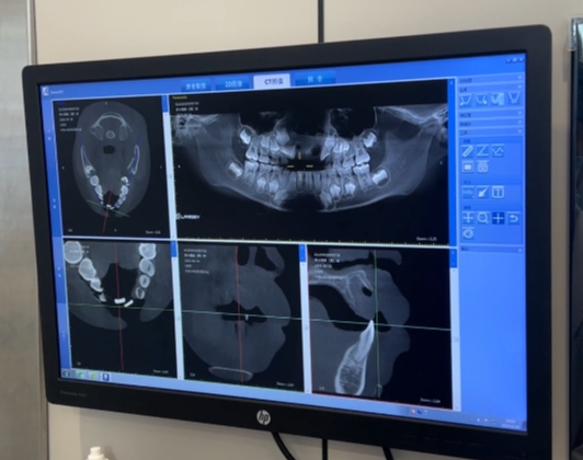 这位患儿在当天早上的冰球比赛中磕伤面部,导致上门牙(11、21号恒牙)完全性脱位,当时伴有出血和上唇肿胀,拍了CT发现牙槽骨骨折......这已经属于非常严重的牙外伤。