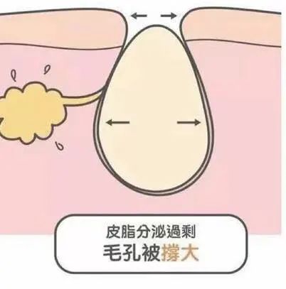 此外,毛孔粗大跟油脂分泌旺盛也脱不了干系。油脂分泌过多,不能正常排出的油脂就会堆积在毛囊,久而久之出口便会“被迫膨胀”,造成毛孔粗大。