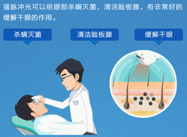 通过光子能量穿透表皮加热睑板腺,促进睑脂软化和排出,疏通睑板腺腺管。