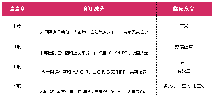白带常规清洁度一般可以分为四度: