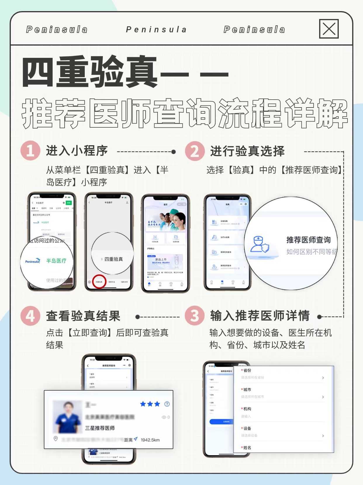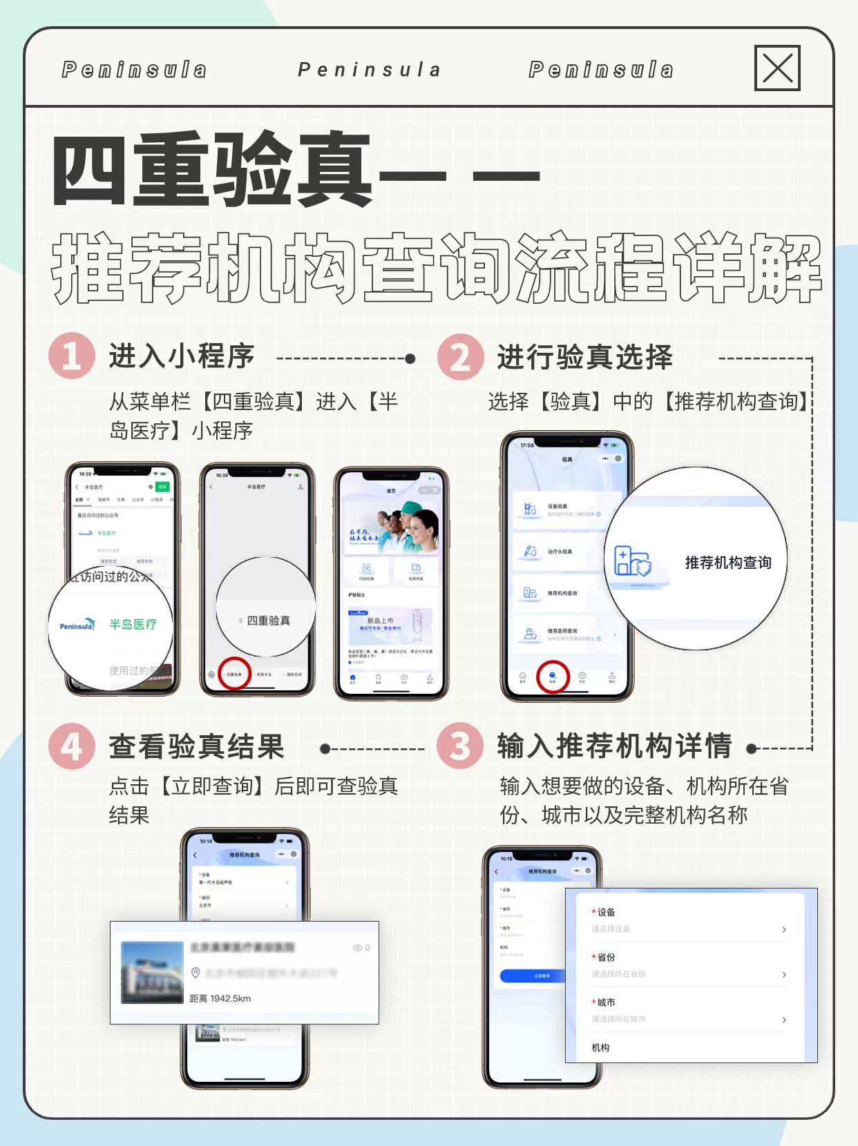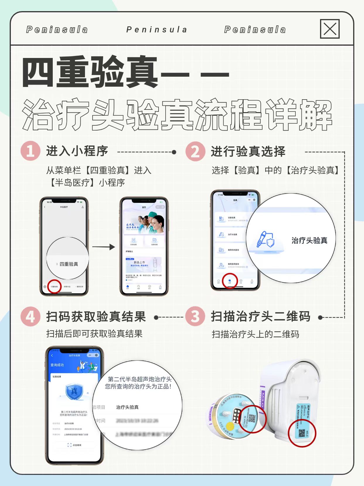 从菜单栏 [四重验真] 进入 [半岛医疗] 小程序