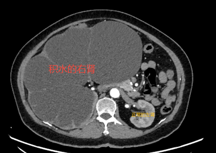 春节回家,长年在深圳打拼的小李(化名)看到自己60岁的老母亲比以往胖了不少,尤其是肚子,胖了两圈还不止,说是“怀胎十月”都不为过,可老人家说并没有感到不舒服,偶尔有点腰酸腰胀,忍一忍也就过去了。小李听后不放心,过完春节便马上带母亲来到大医院检查,结果发现老母亲的肚子居然是被右肾给填满了,此时的右肾已经像气球一样被吹到了将近40cm,并且里面充满尿液,功能也已丧失,而罪魁祸首竟是一颗“潜伏”在输尿管内的仅有0.8cm的结石。这颗从未引发疼痛的结石,像一道闸门,让她的肾脏在不知不觉中被积水“淹没”。