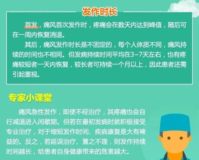 多在夜间或清晨发作:午夜至8:00之间最为常见,这个时间段急性痛风发作的可能性是白天的2倍以上。