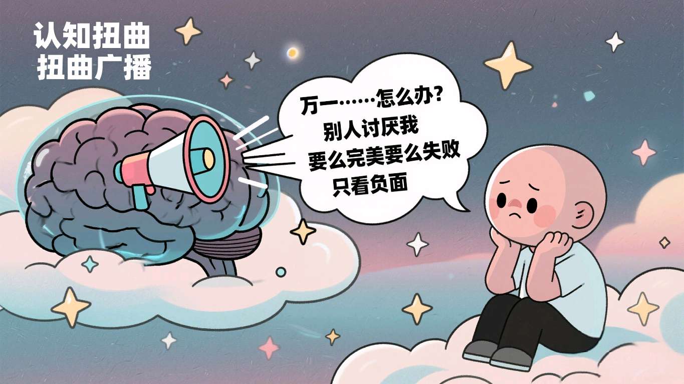 ① 灾难化思维: 大脑自动开启“万一……怎么办?”的末日模式。一个小问题,能被它脑补成一场无法收场的人间悲剧。