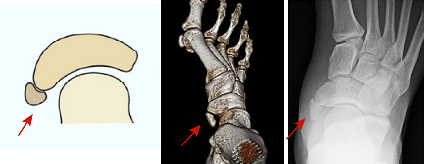 足副舟骨是一种先天性畸形,是舟骨结节第二骨化中心的发育异常所致,Grogan等报道副舟骨发生率为13%,常伴发平足畸形。绝大多数副舟骨(90%以上)是没有症状的,痛性副舟骨患者最常见症状为中足内侧疼痛和触痛。