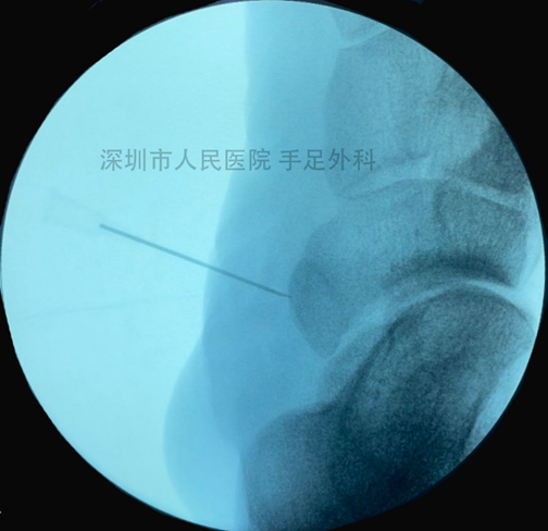 图6:对于成人副舟骨痛患者,采用Kidner术,先定位副舟骨。