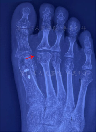 图13:Freiberg病患者第2跖骨头扁平、塌陷