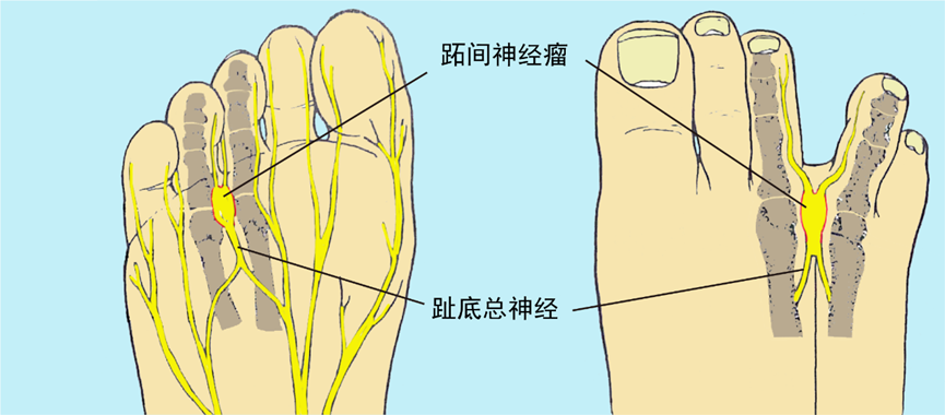 跖间神经瘤又称Morton神经瘤,是足底的趾总神经受到刺激或压迫而引发的以疼痛为主要症状的疾病,该神经瘤并不是真正的肿瘤,而是神经外周产生的纤维增生。