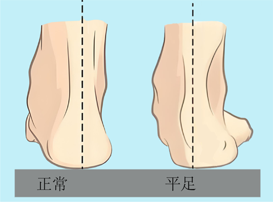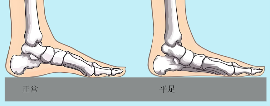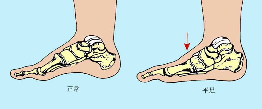 平足是足部异常的一种体征,无论有无症状,均称为平足。平足症是指伴有足踝部疼痛为主要症状的平足。