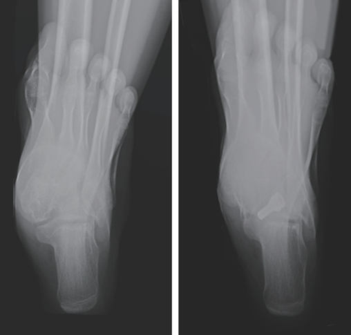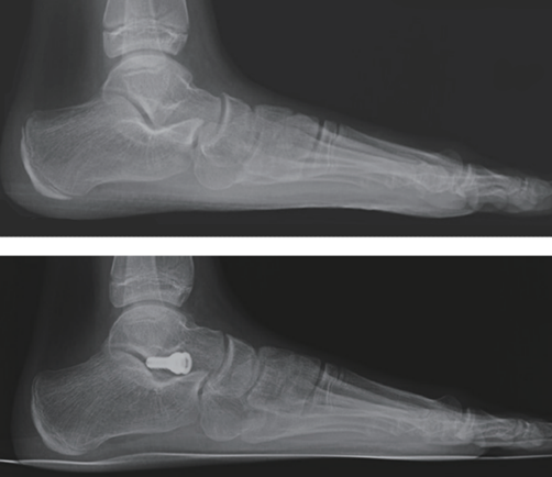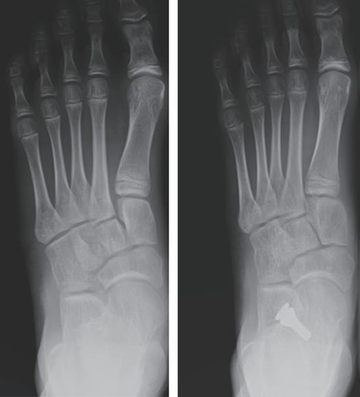 图12:Hyprocure距下关节制动器矫正青少年柔软性平足(正位X光片,右侧为术后)