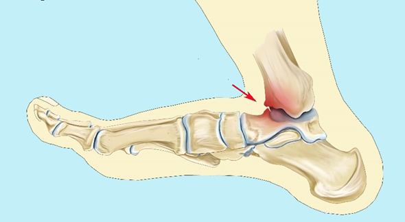 ▶踝关节过度跖屈,造成踝关节前关节囊反复被牵拉,胫骨下唇与距骨颈部重复撞击,形成骨赘或关节游离体。