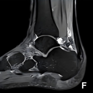 图7:MRI检査可见跟腱止点处钙化增生, 跟腱滑囊炎