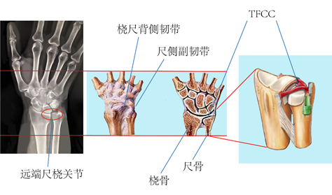 ▶▶结构因素:由于TFCC位置和结构的特殊性,TFCC 容易受到外力的影响而损伤。例如,尺骨正向变异(即尺骨比桡骨长)时TFCC 承受的压力更大,容易损伤。