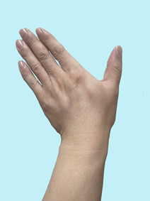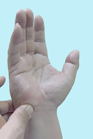 ▶手腕尺侧有固定的压痛点,手腕向桡侧倾斜或者背伸时引发疼痛。
