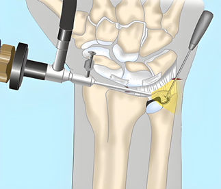 ▶开放手术创伤大,解剖结构欠清晰,不利于手术操作,而腕关节镜手术具有明显优势。