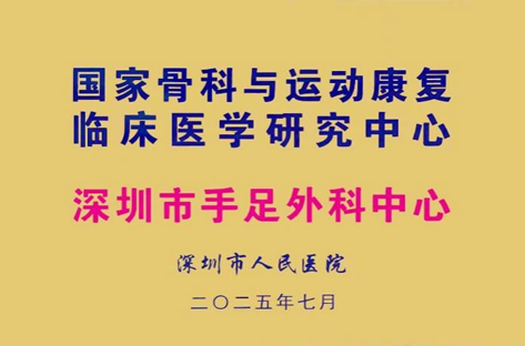 2025年8月16日,经国家骨科与运动康复临床医学研究中心综合评估与审慎研究,认定深圳市人民医院为“国家骨科与运动康复临床医学研究中心--深圳手足外科中心”。
