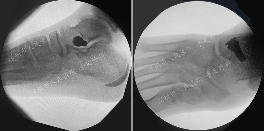 图8:跗骨螺钉置入明显纠正了足跟外翻。