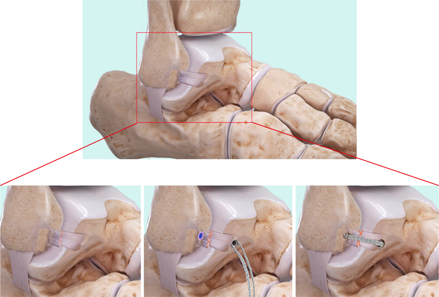 图6:跗骨螺钉置入是儿童柔韧性平足症的微创治疗技术,通过植入螺钉增强距下关节稳定性,改善足部功能。